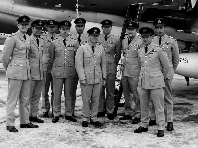 02 FEB 1970 - USA:RNZAF pilots in front of TA-4K BuNo 157914, NZ6251 at NAS Cecil Field. L to R: Graeme Thomson, Ken Gayfer, John Woolford, Roger Henstock, Mike Callanan, Ken Cox, Murray Abel, Ross Ewing, John Scrimshaw, Trevor Bland. Don Simms photo.