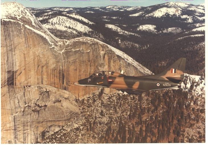 1970:Royal New Zealand Air Force TA-4K Skyhawk BuNo 157914, NZ-6251, flying over Yosemite National Park. Probably during RNZAF training in U.S. Photo from James Stegman.