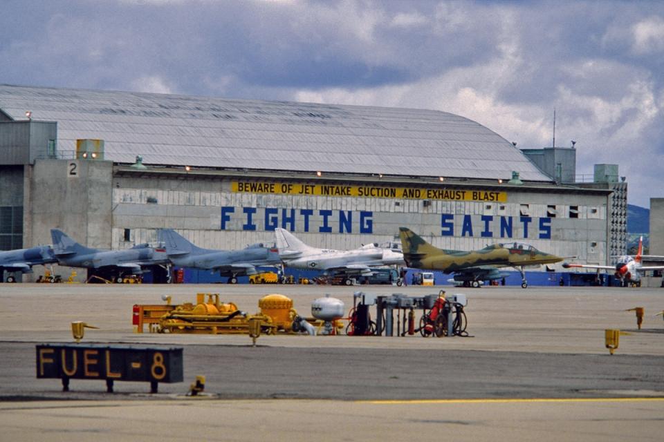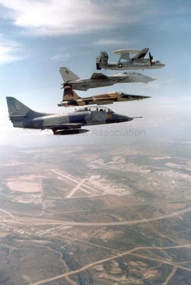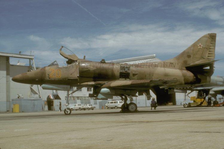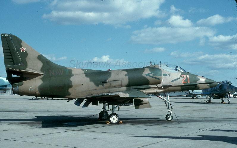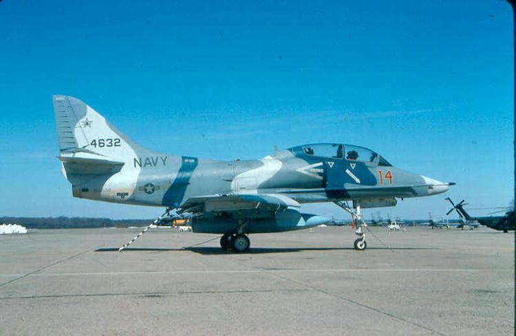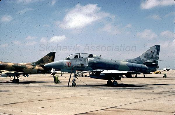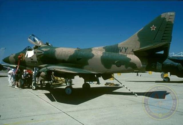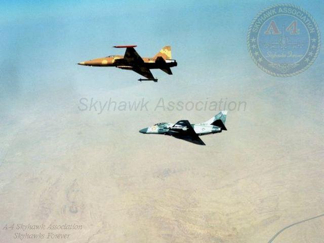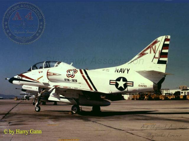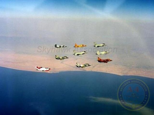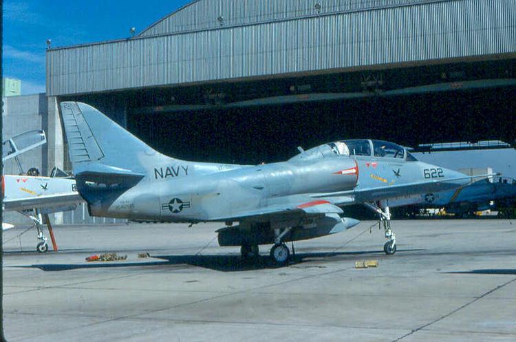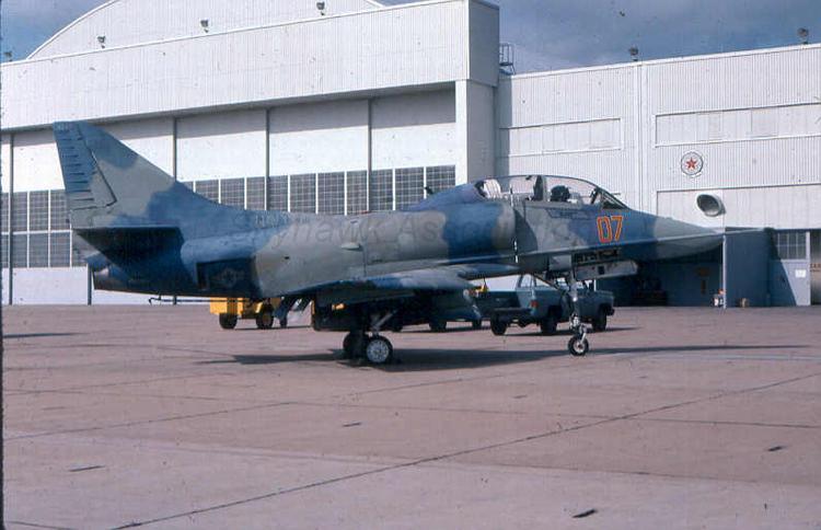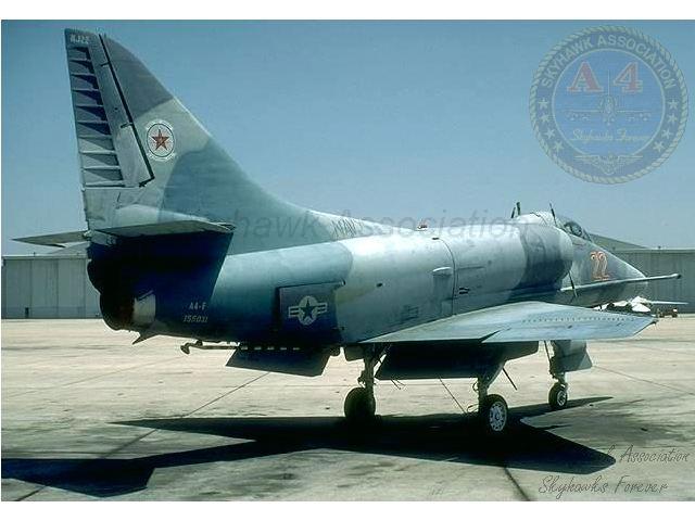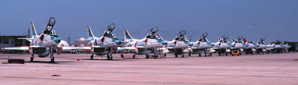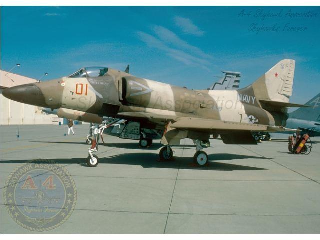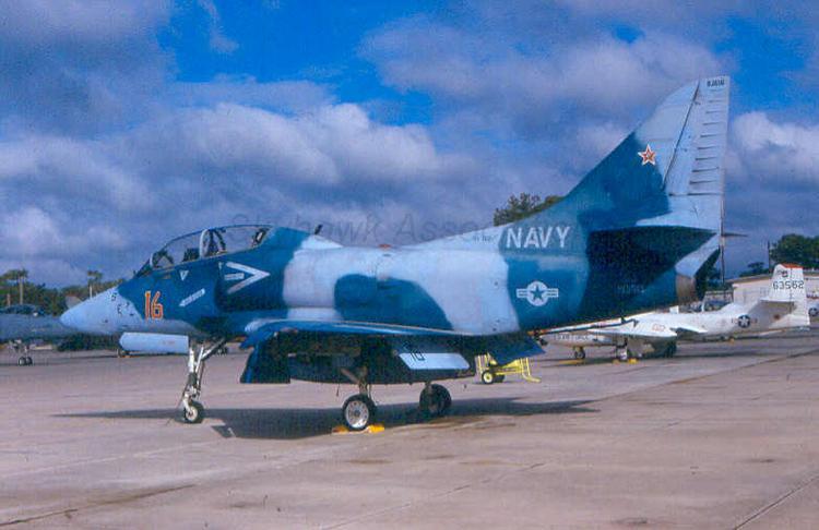 1955: - - - Chance-Vought F7U-3M, Cutlass. 1958: - - - FJ-4 Fury 1958: - - - F9F-8 Cougar 1960: - - - Grumman TF-9J (F9F-8T) Cougar. 1967: - - - McDonnell Douglas F-4 Phantom. 1967: - - - *Douglas A-4E Skyhawk. APR 1967: - Douglas TA-4F Skyhawk. 196?: - - - Douglas TA-4J Skyhawk. 1974: - - - Northrop F-5 Talon. MAR 1974: - *Douglas A-4F Skyhawk. MAY 1992: - Douglas A-4M Skyhawk? 19??: - - - Grumman F-14 Tom Cat. 19??: - - - McDonnell Douglas F/A-18 Hornet. Some Echo and Foxtrot Skyhawks modified to "Mongoose" configuration. For A-4 Skyhawk aircraft assigned to this unit see lower in this page: |
