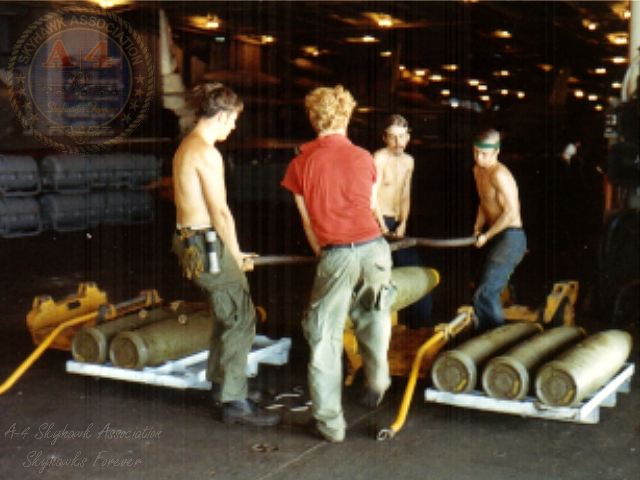 Unit Photos 1961-62: Black Diamonds Skyhawk BuNo 148442, NP-694, waiting its turn behind BuNo 149583 on the port cat. VA-212 NP-228 is in the foreground behind Black Diamonds BuNo 147835, NP-684. G. Bragg. 1962-63: BuNo 142832, NP-213, and BuNo 142850, AH-200 about 1963-63. U.S. Navy photo via Tom Bispo. JAN64: Catapault Officer gives the go sign to Rampant Raiders LTJG Gilvertson in Skyhawk BuNo 150137, NP-212, aboard the Hanna. Naval Aviation News Photo. Circa 1965-66: BuNo 149652 over Patuxent River. Note it is labeled as a "YA-4E", and served with NATC as a "Service Test" aircraft from 01 APR 1965 to 15 AUG 1966 when it went to NAS Lemoore. 1966: U.S.S. Hancock: Rampant Raiders Skyhawk BuNo 150000, NP-222, being guided across the deck of the Hanna by a plane handler using a tillie bar. Photographer unknown. 20DEC66: Briteye parachute flares on Rampant Raiders Skyhawk BuNo 150006, NP-230, aboard the Bonnie Dick. U.S. Navy photo. 1966-67: Black Diamonds Skyhawk BuNo 148442, NP-694, manned and ready aboard the Hanna. VA-212 BuNo 152044, NP-231, is between 694 and VF-211 Crusader NP-101. G. Bragg. MAR67: Unknown VA-212 Rampant Raiders A-4E Skyhawk launches from the USS Bon Homme Richard. Official U.S. Navy photo. 11MAR67: BuNo.149971. "1st Walleye flight over Vietnam" is what the photo lab caption says. It's VA-212 A-4E BuNo 149971 NP-232 on the deck of the Bonne Homme Richard dated 11 March 1967. The name on the plane looks like Lt Wiley Decarli. Official U.S. Navy from Gary Verver Collection. "Pilot on the left is Tom Taylor, who was TAD from China Lake. The pilot on the right is Homer Smith, VA-212 CO at the time," per Wiley Decarli. MAY67: CDR Homer L. Smith boards NP-200 of VA-212. MAY67 NAN. 1967: U.S.S. Bon Homme Richard: NP-231, BuNo.150003, flown by VA-212 off the U.S.S Bon Homme Richard during the 1967 WestPac Cruise vents fuel from a large hole in the right wing. (first of 4 photos) Ray Powell. BuNo.150003, NP-231, 2 of 4 photos of NP-231, BuNo.150003, flown by VA-212 off the U.S.S Bon Homme Richard during the 1967 WestPac Cruise. Fuel venting from the right wing. Ray Powell. BuNo.150003, NP-231, 3 of 4 photos of NP-231, BuNo.150003, flown by VA-212 off the U.S.S Bon Homme Richard during the 1967 WestPac Cruise. Fuel venting from the right wing has stopped. The bird is running on the fuselage tank and best be getting back to the nest very soon. The Driver has dropped his gear and tailhook, and it looks possible that the bird might make it home. Ray Powell. BuNo.150003, NP-231, 4 of 4 photos of NP-231, BuNo.150003, flown by VA-212 off the U.S.S Bon Homme Richard during the 1967 WestPac Cruise. This shot clearly shows the extent of the combat damage to the right wing. Fuel venting from the right wing has stopped. Ray Powell. 25 April 1967 BuNo151102 receives fatal combat damage. LTJG A.R. Crebo is recoverd. 14JUN67: First in a sequence of photos of Walleyes being loaded and launched. VA-212 A-4E's being loaded with Walleyes on board U.S.S. Bonne Homme Richard on 14 June 1967. BuNo 151113, NP-223, with ordies loading a Walleye on the #2 external wing rack. U.S. Navy Photograph from Gary Verver Collection. Second in a sequence of photos of Walleyes being loaded and launched. VA-212 A-4E's being loaded with Walleyes on board U.S.S. Bonne Homme Richard on 14 June 1967. BuNo 151113, NP-223, with ordies making the wing rack connections. U.S. Navy Photograph from Gary Verver Collection. Third in a sequence of photos of Walleyes being loaded and launched. VA-212 A-4E's being loaded with Walleyes on board U.S.S. Bonne Homme Richard on 14 June 1967. BuNo 151113, NP-223, with ordies attaching the Walleye fins. U.S. Navy Photograph from Gary Verver Collection. Fourth in a sequence of photos of Walleyes being loaded and launched. VA-212 A-4E's on board U.S.S. Bonne Homme Richard on 14 June 1967. (l-r) BuNo 149652 NP-233, BuNo 151113 NP-223 and BuNo 149959 NP-232, each armed with a Walleye. U.S. Navy Photograph from Gary Verver Collection. Fifth and last in a sequence of photos of Walleyes being loaded and launched. 1967: A-4E Skyhawk on the Bonnie Dick. Rampant Raider Skyhawk 229 seen through a porthole on the USS Bon Homme Richard's island in 1967. Photograph by and courtesy of Speedy Gonzalez. 1967: A-4E Skyhawk landing on the Bonnie Dick. Rampant Raider Skyhawk as seen from the USS Bon Homme Richard's starboard catapult track - looking aft in 1967. Photograph by and courtesy of Speedy Gonzalez. 1967 SE Asia: Rampant Raiders Skyhawk BuNo 151102, NP-225, parked on the ramp. F-8E Crusaders BuNo 150660 and BuNo 150917 tail code DB in the background. Unknown photographer via W. Mutza. MAR67: VA-212 BuNo 151154. USS Bon Homme Richard (CVA-31) - Catapults an A-4 "Skyhawk" attack plane, during operations off Vietnam, March 1967. Photographed by JOC R.D. Moeser, USN. Official U.S. Navy Photograph - Photo #: USN 1142110. From Gary Verver. 1967: Bon Homme Richard Flight Deck Debrief. Left to right: Back to camera, F-8 Crusader pilot; Red ball cap - Paul Spear; VA-212 Commanding Officer Homer Smith; Pilot to right - unknown. 18SEP67: VA-212 Skyhawk and Walleye over Vietnam. U.S. Navy photograph, Gary Verver Collection. VA-212 Skyhawk and Walleye over Vietnam. Cropped shot of the previous. U.S. Navy photograph, Gary Verver Collection. 1967: VA-212 A-4Es over Vietnam. USN Navy via Ray Powell. 1967: VA-212 A-4E over Vietnam. USN Navy via Ray Powell. 1967: BuNo.149652 in Sept. 67 while being refueled by VAH-4 KA-3B Skywarrior BuNo 142654. Gary Verver Collection. 1967: VA-212 A-4E BuNo 151191, NP-220, and BuNo 151154, NP-221 in-flight with MERS and iron bombs. From Verver Collection. 1968: BuNo 154983 on the far left, with two squadron mates loaded for a mission. 154983 will survive combat and later become a Blue Angel. Photo from Richard Mylar. Circa 1968: Right front view of VA-212 Rampant Raiders A-4F Skyhawk BuNo 155012, NP-306, on the ramp next to VA-212 A-4F BuNo 155043, NP-310, NAS Lemoore. Name be