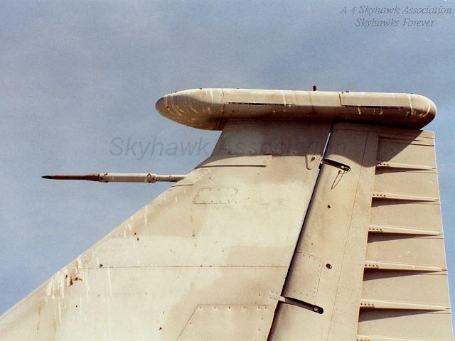 BUREAU NUMBERS and Construction Numbers ARE IMPORTANT. The only positive way to identify a particular Skyhawk is the six-digit Bureau Number (abbreviated "BuNo"). A BuNo is assigned only once and never repeated, even after an aircraft is retired or destroyed. IF a Skyhawk is accurately repainted, the model designation (A-4C, A-4E, etc.) and BuNo can be found painted on the aft end of the fuselage, beneath the horizontal stabilizer. I painted correctly, the last four digits of a BuNo. can also painted on the tail/vertical stabalizer. The offical BuNo of a Skyhawk will be found on embossed metal tags attached to the front instrument panel in the cockpit, and to the inside face of the nose wheel well, left front. It may also be found behind the ejection seat, or in other areas of the cockpit. On a/c tags the BuNo is the same as the Customers Serial Number. BuNo should be recorded in the paperwork (aircraft logbook, etc.) that accompanies an aircraft upon transfer. Also please note the MSN aka Construction Number (Manufacture five digit Serial Number) on the tag. Both of these numbers are important for identification.